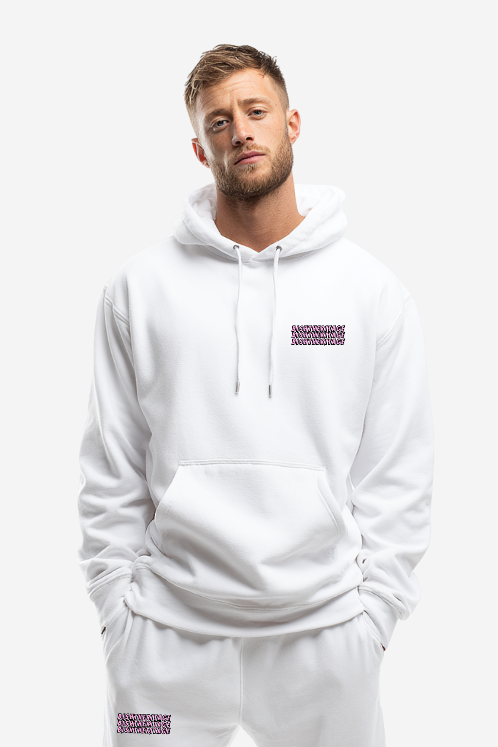 Stacked BISHTHERITAGE design in vibrant pink — minimal, modern, and full of character.
