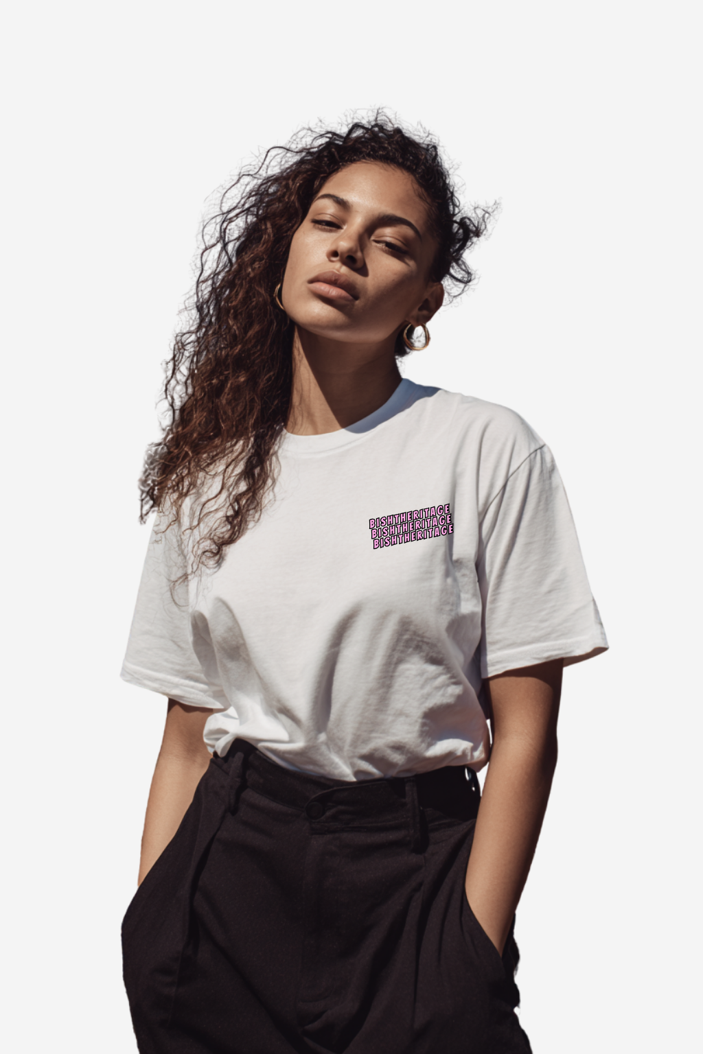 A stacked BISHTHERITAGE design in vivid pink — a statement that repeats itself for impact.