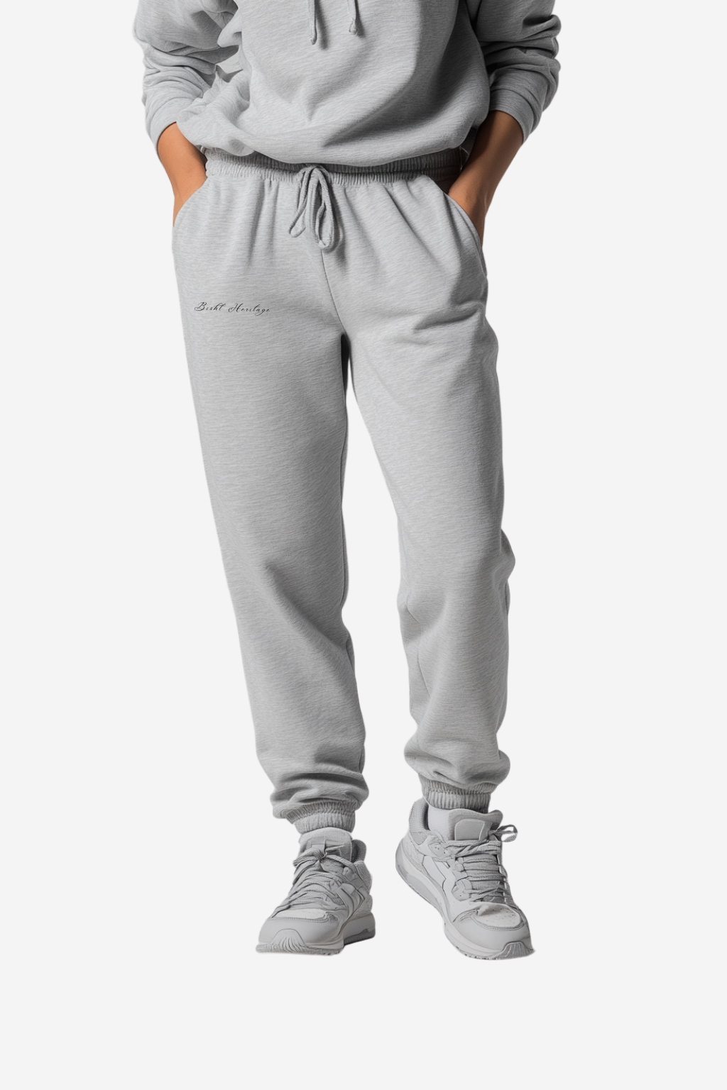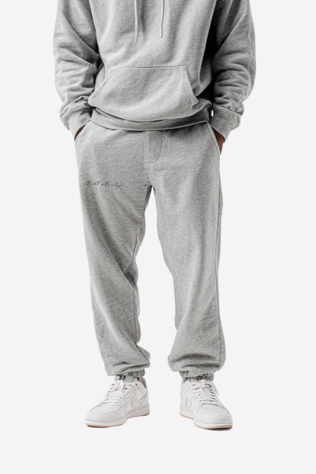 Essentials, elevated. The Cloud Grey sweatpants bring soft structure to everyday ease. A staple piece that whispers status without asking for attention.