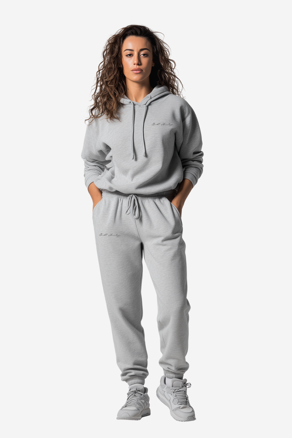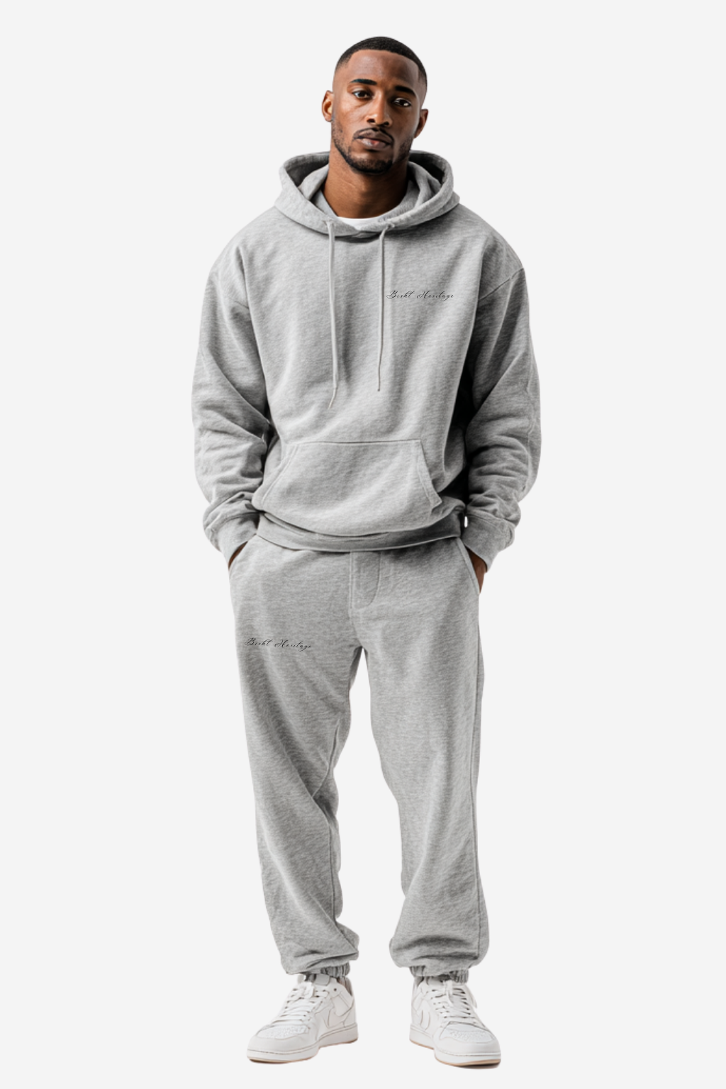 A perfectly matched hoodie and sweatpants set — cool, collected, and clean.